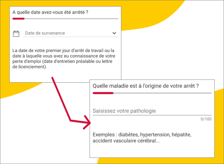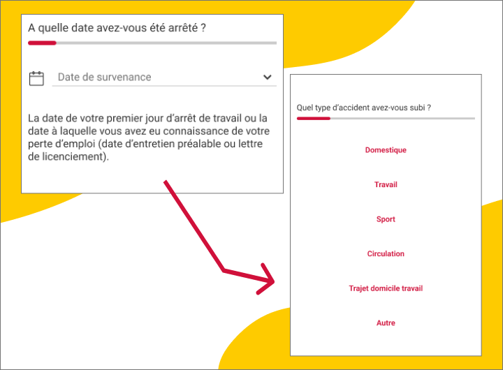 - En fonction de ma situation, je choisis la cause de mon arrêt (Maladie, Accident, Perte d'emploi)