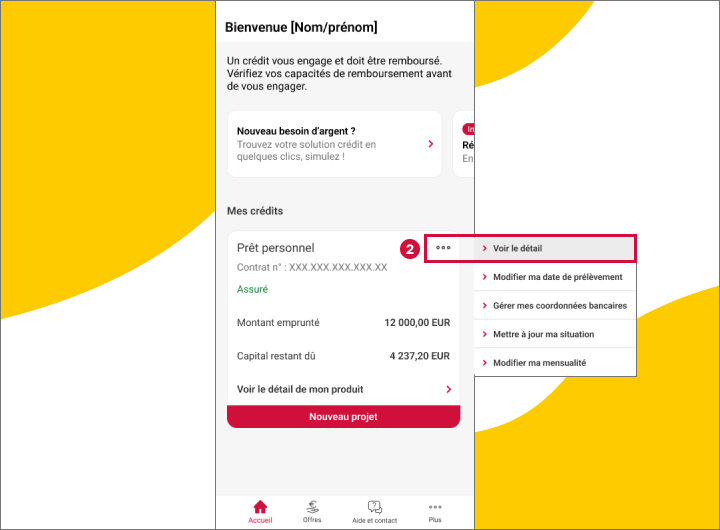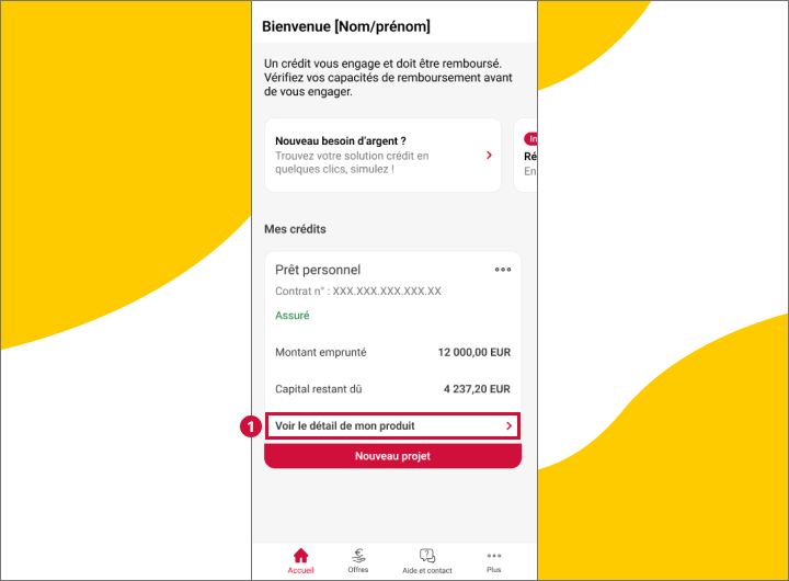 - J'appuie sur le bouton "Voir le détail de mon produit" en bas de l'encart de mon crédit
