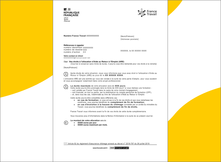- La notification d'ouverture de droits France Travail,
