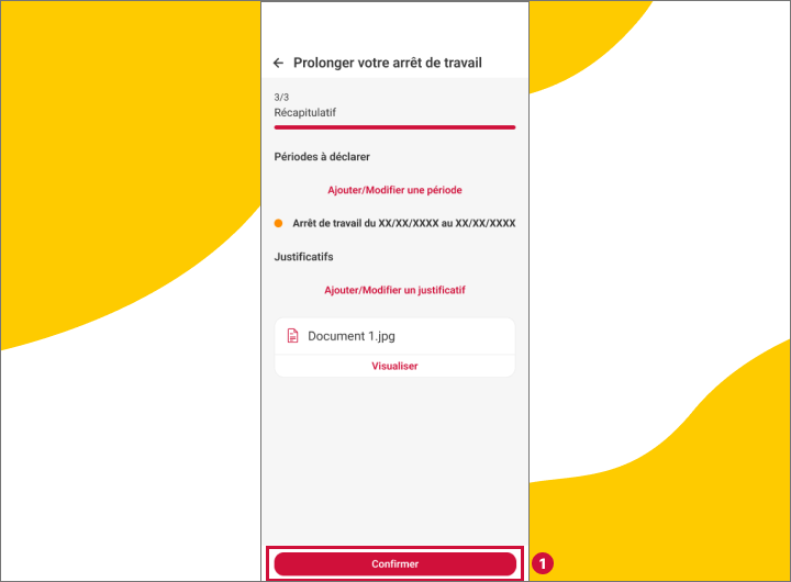 - Je relis attentivement les informations renseignées, puis je les confirme en appuyant sur le bouton rouge "Confirmer" en bas de la page